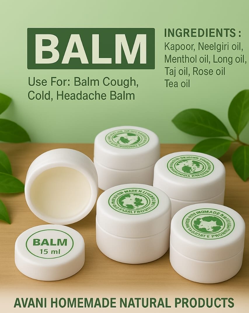 Balm — made from camphor, eucalyptus oil, clove oil, cinnamon oil, rose oil, and menthol.