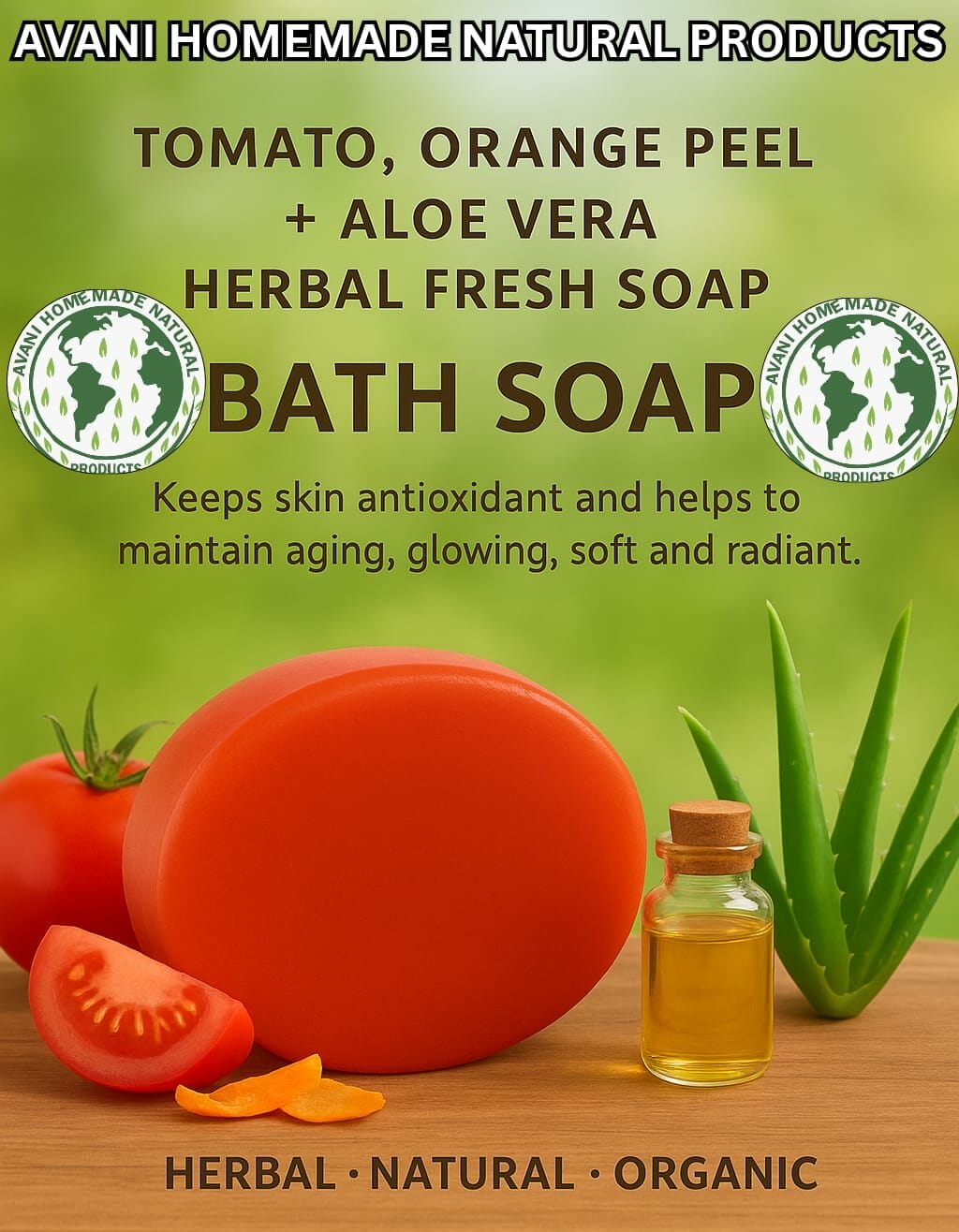 Tomato, Orange Peel + Aloe Vera Herbal Fresh Soap